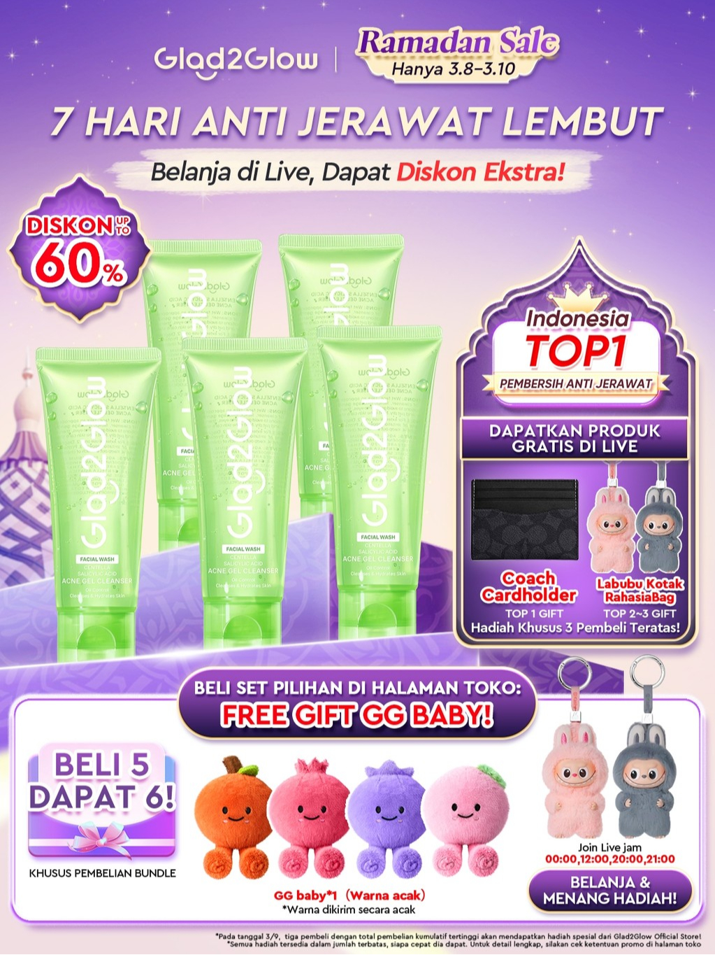 Glad2Glow Centella Salicylic Acid Acne Gel Cleanser facial wash pembersih wajah sabun cuci muka face wash skincare micellar water,Menenangkan kulit berjerawat dan kemerahan,mengontrol minyak berlebih,Mengangkat sel kulit mati,G2G glad2glow officia store