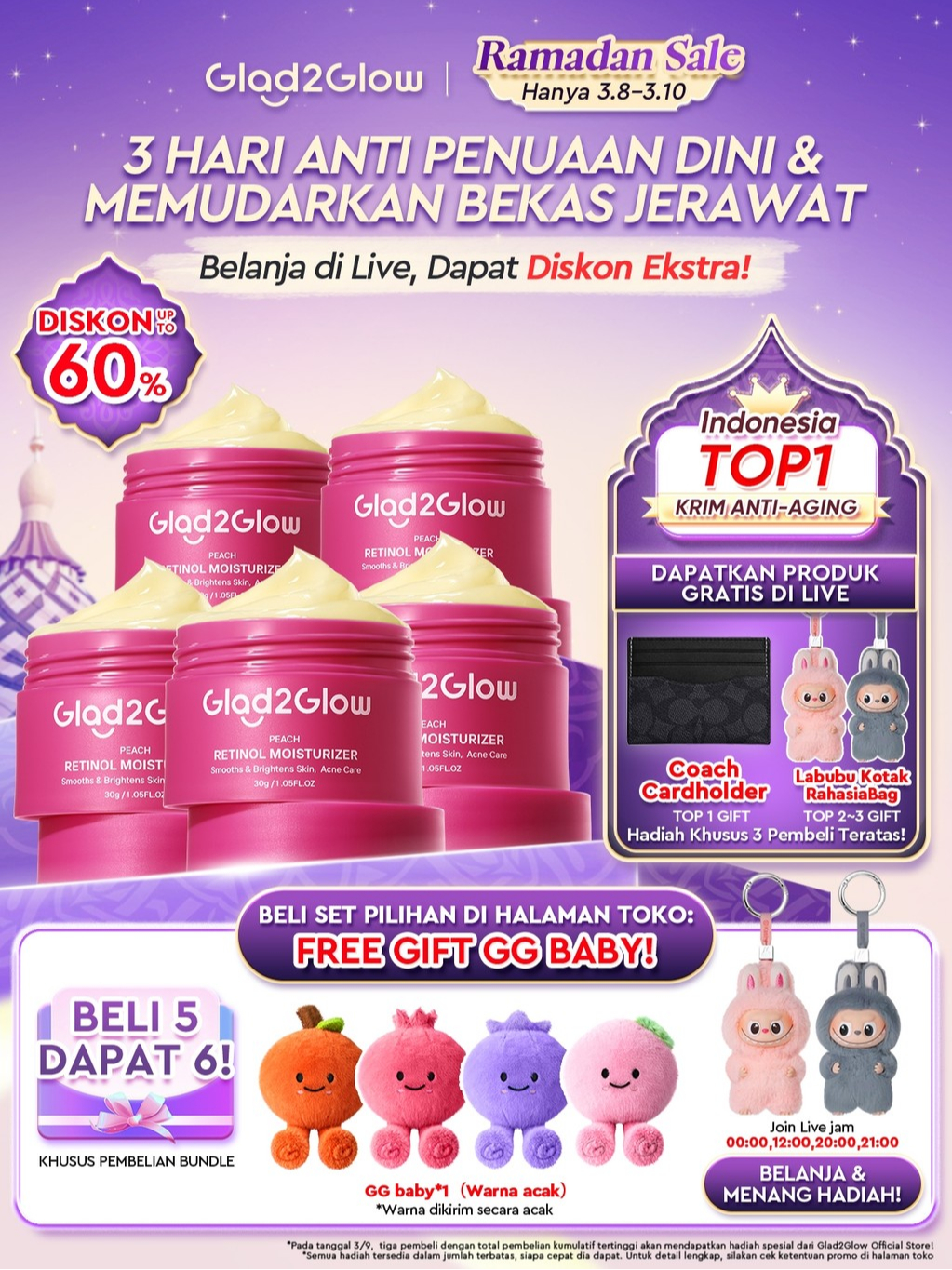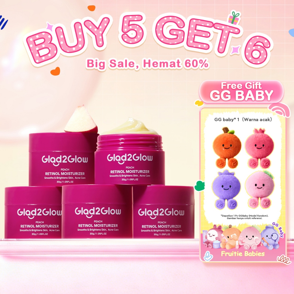 Glad2Glow Peach Retinol Moisturizer Pelembab Anti Penuaan Penghalang Kulit Mencerahkan Flek Hitam Mengurangi kerutan mencerahkan warna kulit menghaluskan kulit mengecilkan membesar melembabkan g2glow official store