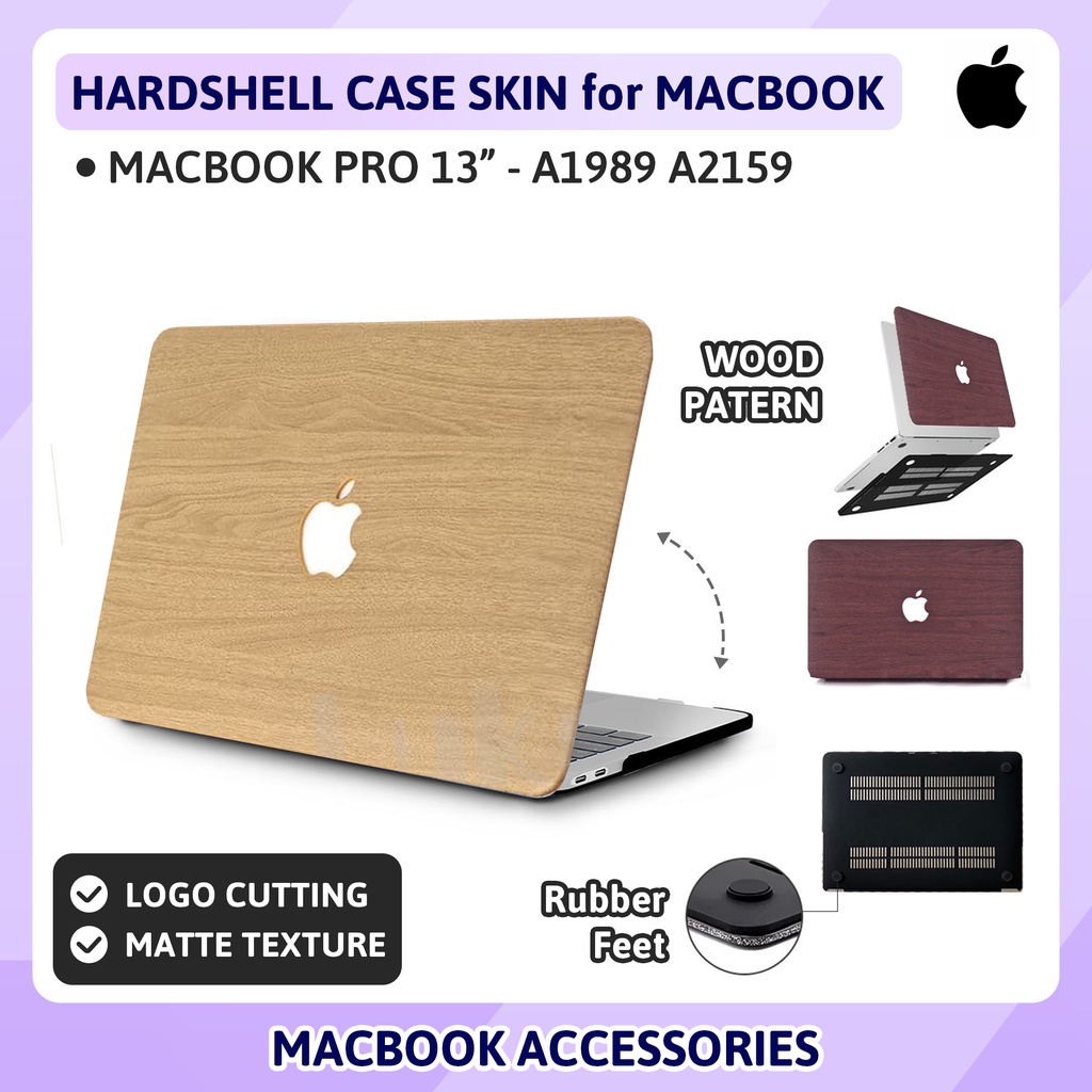 MacBook Pro 13 13.3 inch A1989 A2159 Case Casing Wood Skin Motif Kayu Cover Hardshell Anti Gores Pelindung Hard Macguard Logo Apple Kesing Corak Unik Elegan