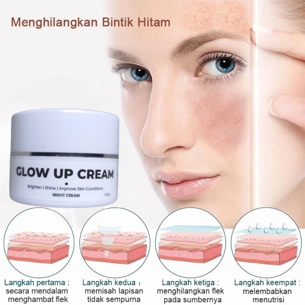 Night Cream Glow Up Krim Malam Mencerahkan Wajah Pemutih Anti Aging Whitening Face Cream krim collagen Asli Pemutih Anti Kerut Penghilang Bintik Gelap Kaca Kulit krim