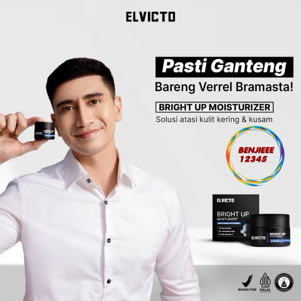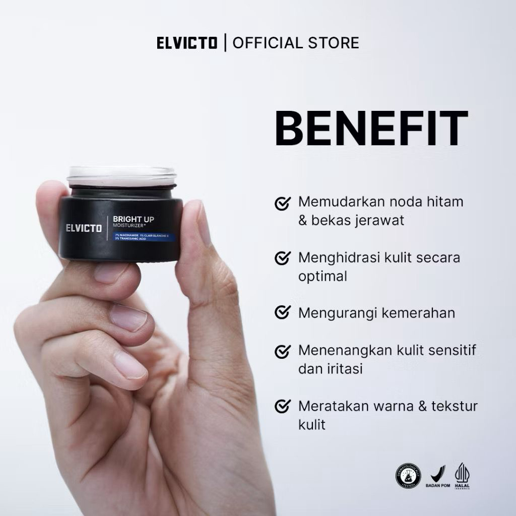 [REAL 7% NIACINAMIDE] ELVICTO BRIGHT UP MOISTURIZER+ 15gr | Pelembap Wajah Pria Moisturizer Pencerah Wajah Pria Dark elvicto Elvicto 15 gr