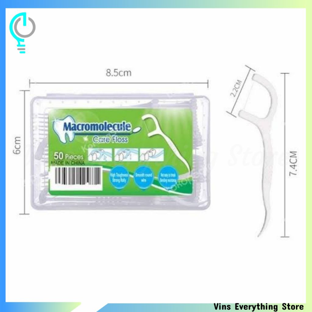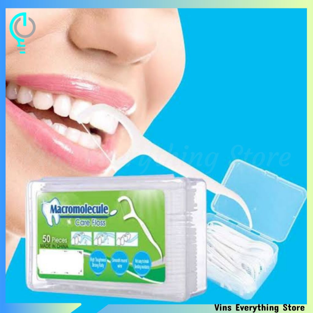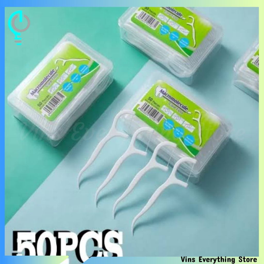 [VES] Dental Floss Macromolecule dental floss steril isi 50 benang selah gigi benang tusuk gigi steril isi 50 pembersih celah gigi