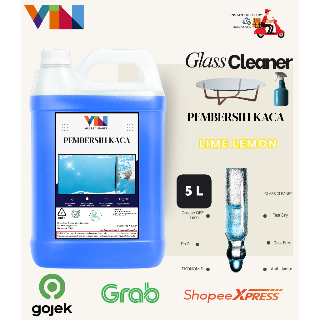 Glass Cleaner / Pembersih Kaca 5 liter/ Sabun Hotel / Cling / Kerak Kaca / Jamur Kaca 20 liter