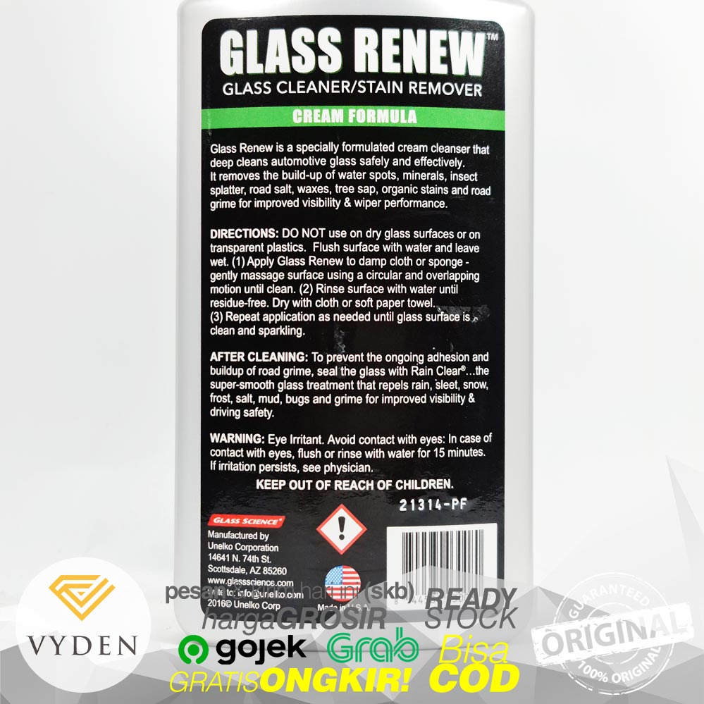 Glass Science Glass Renew Glass Scrub Kerak Air Jamur Kaca Waterspot MURAH