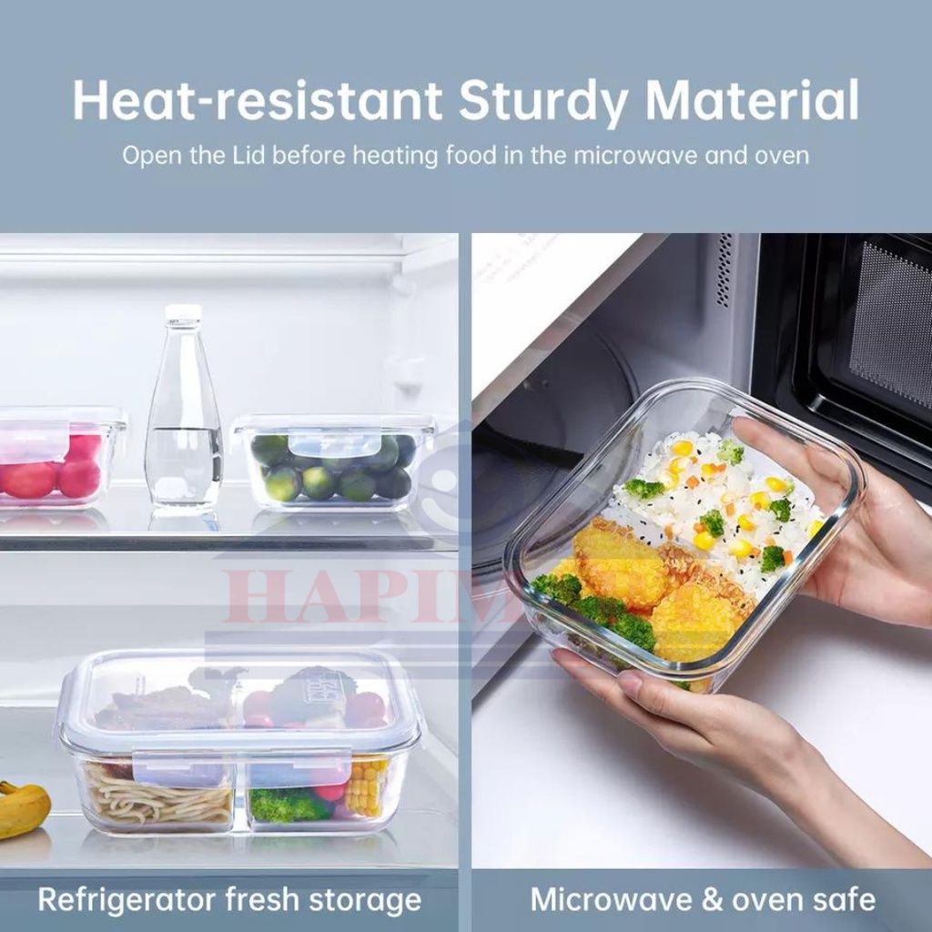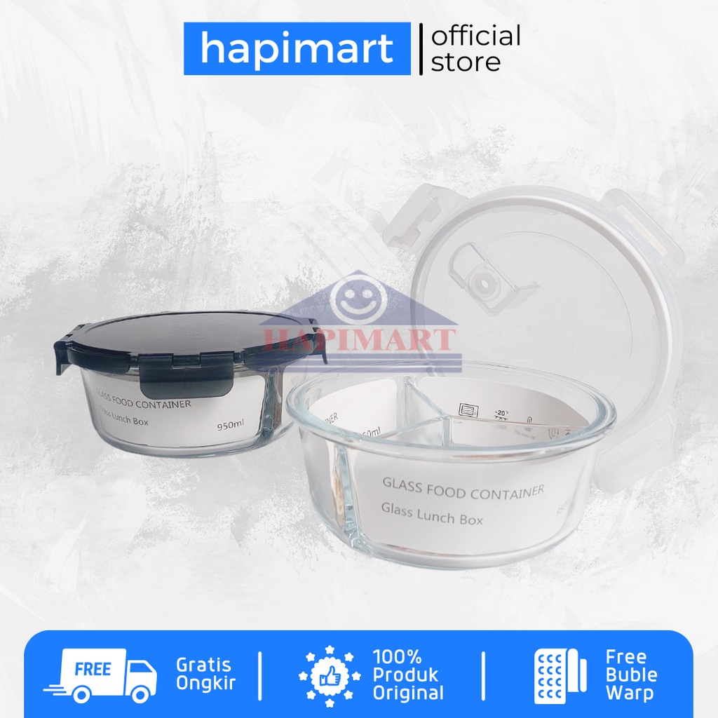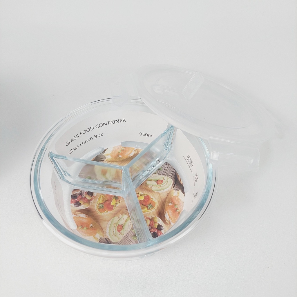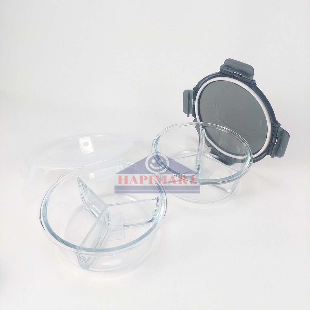 Glass Storage Box Set Wadah Tempat Makanan Bulat 3 Sekat Hitam Dan Putih Satuan Storage Berkualitas Dengan Kaca Tempered Tebal