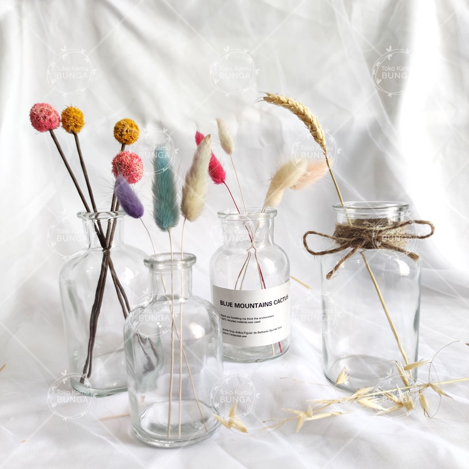 Glass Transparant Vase / Vas Bunga Bening Dekorasi | Dried Flower / Bunga Kering