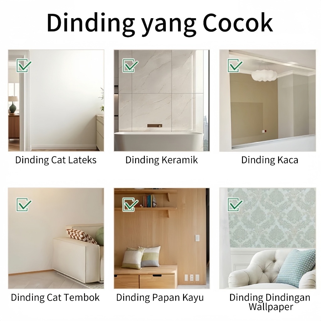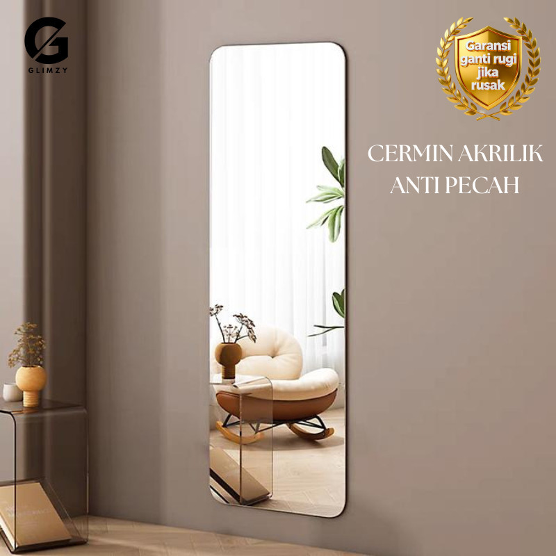 Glimzy Cermin Tempel Dinding Tebal Persegi Panjang Kaca Akrilik Minimalis Full Body 3D Anti Pecah