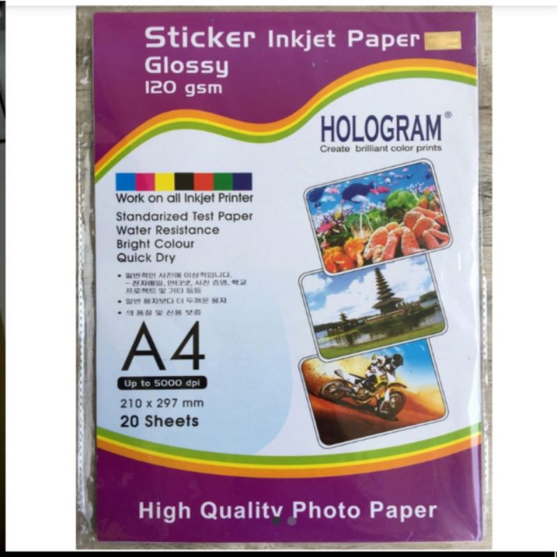 Glosy Sticker Paper -Kertas Sticker Photo Inkjet A4 120 Gsm(isi 20)