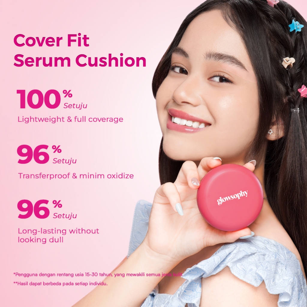 Glowsophy Cover Fit Serum Cushion Long Lasting All Day Velvet Matte Finish Cushion Ringan dengan Medium Coverage Menyamarkan Pori-Pori dan Garis Halus Cushion Kulit Asia Foundation Waterproof Make Up Setting Hasil Akhir Glowing Tekstur Ringan Di Wajah