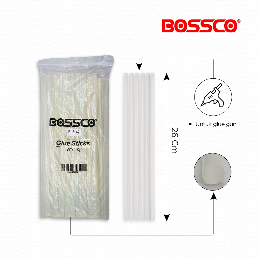 Glue Stick Refill Lem Bakar Isi Lem Tembak BOSSCO 1 KG / Pistol Lem Tembak / Lem Lilin / Hot Melt Glue Gun