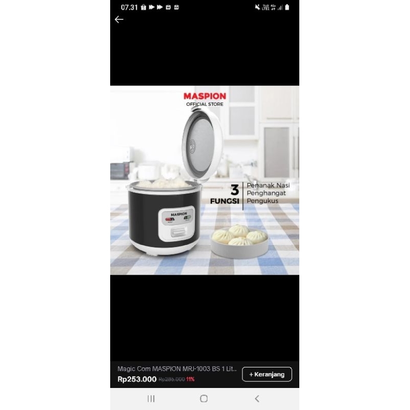 MAGIC COM MASPION 1 LITER MRJ1003 BARU PANCI TEFLON ANTI LENGKET GARANSI RESMI MASPION