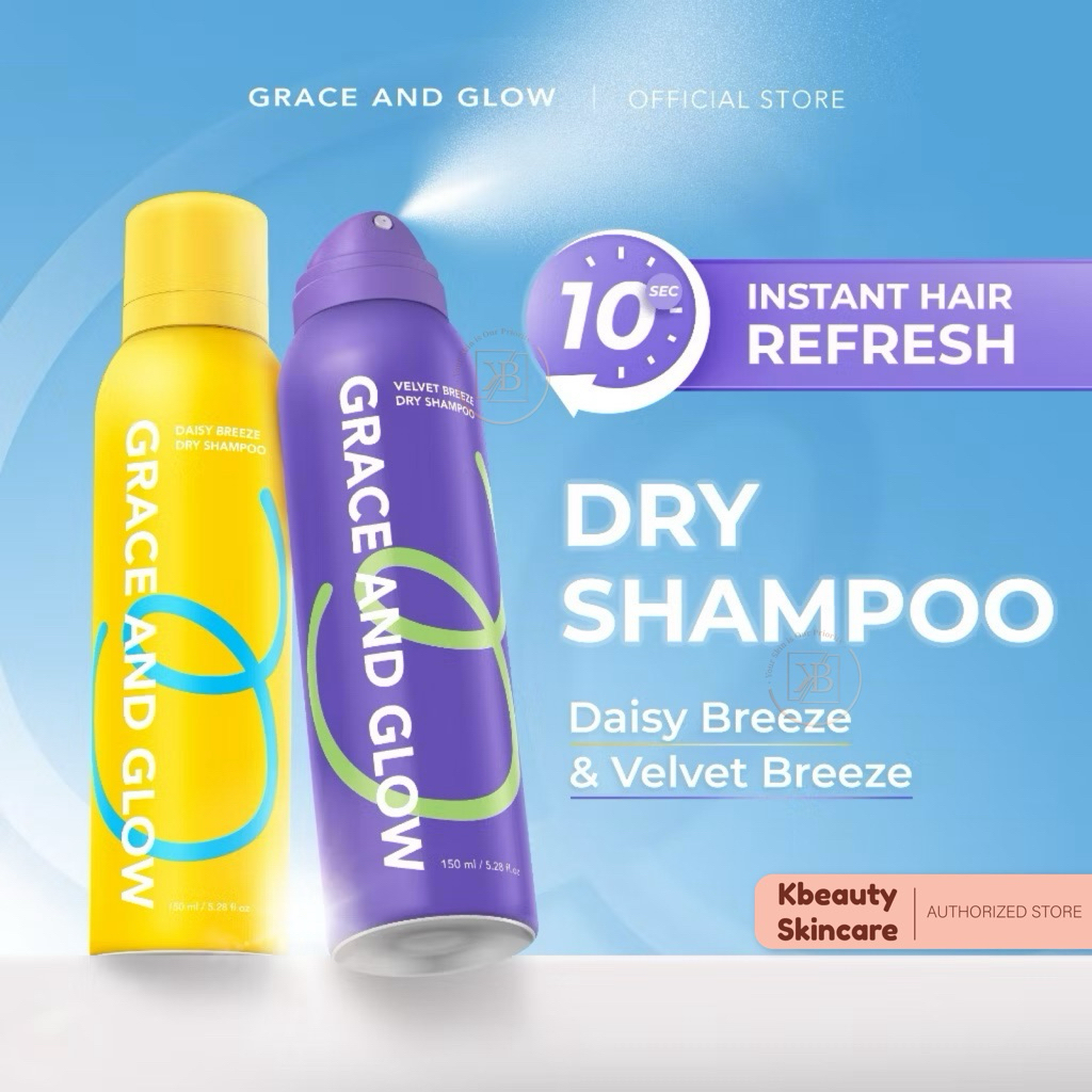 Grace and Glow Dry Shampoo Instant Hair Refresh Daisy & Velvet Breeze | Shampoo Kering Tanpa Bilas Hair Spray Semprotan Rambut Aerosol Anti Lepek Atasi Kulit Kepala Berminyak | Shampo Penyegar Fresh Hair Styling Rambut Bervolume