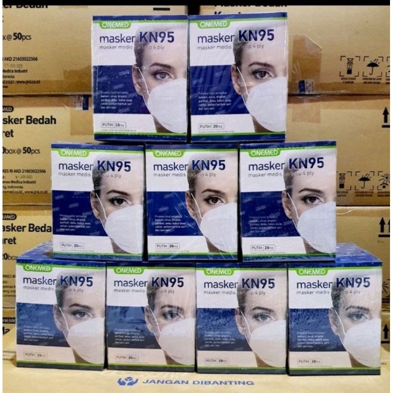Onemed Masker N95 Isi 20 4ply Earloop Face Mask Disposable Bedah Karet Telinga Debu Motor Medis Kesehatan