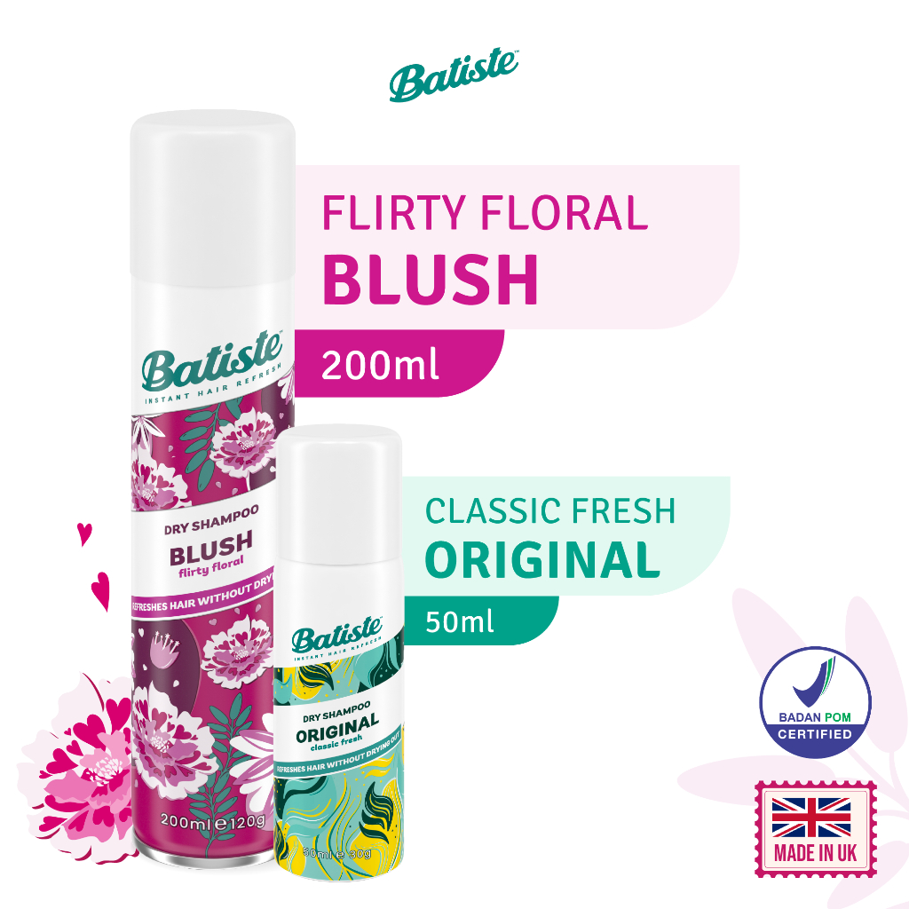 Batiste Floral & Flirty Blush Dry Shampoo 200ml + Batiste Original 50ml (Shampoo Kering Tanpa Bilas)