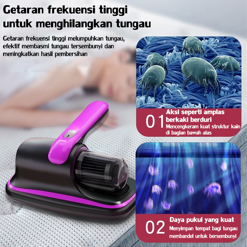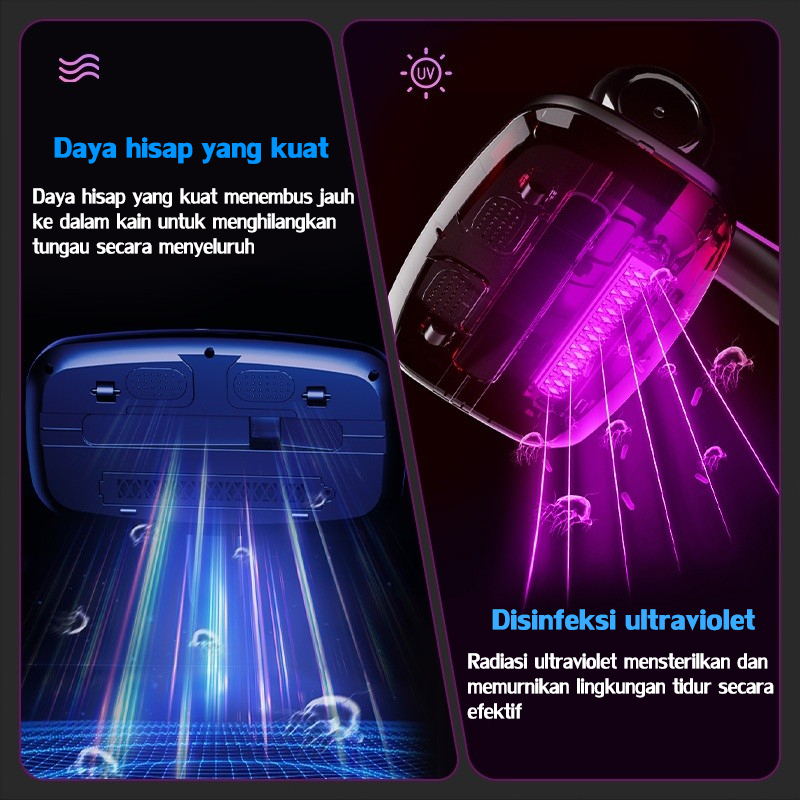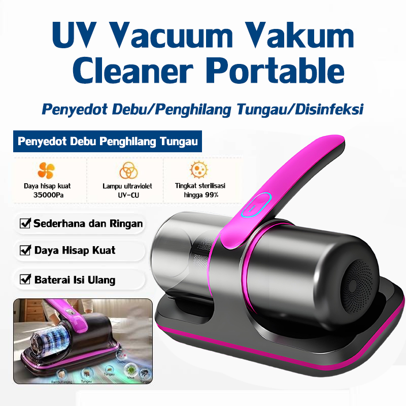 UV Vacuum Vakum Cleaner Portable Rechargeable / Penghisap Debu Kasur Sofa Bed Anti Mites Remover Mesin Penyedot Tungau & Debu untuk Kasur/Sofa/Karpet/Gorden – Nirkabel dengan Daya Hisap Kuat & Fungsi Sterilisasi
