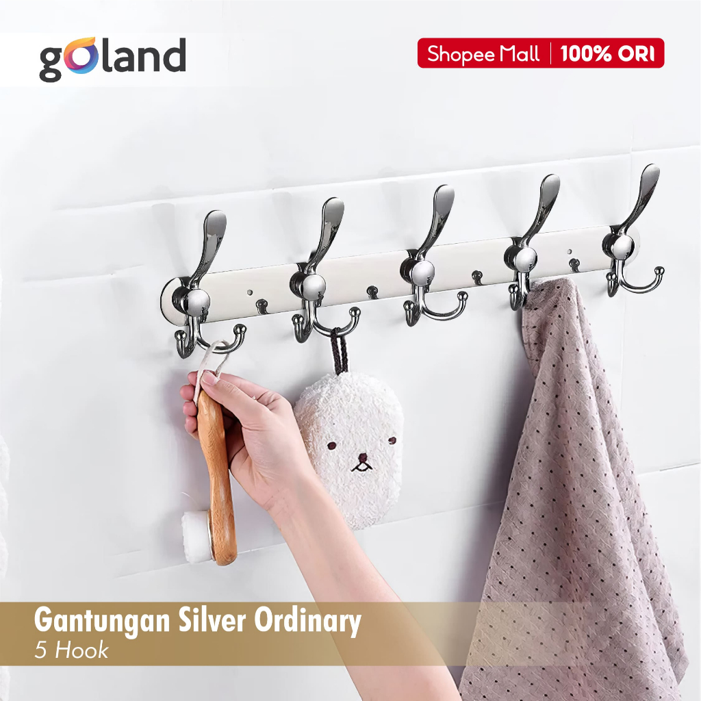 Goland Gantungan Baju Dinding Besi Stainless Steel 5 Kait - Gantungan Multifungsi Motif Mewah 5 Hook