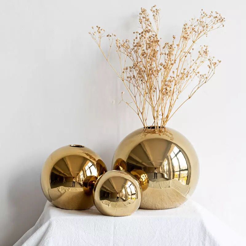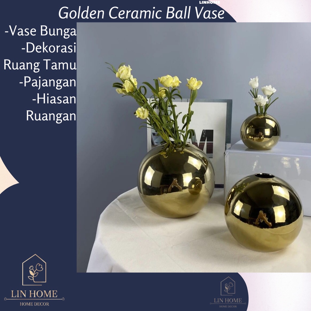 Golden Ceramic Ball Vase Flower / Vase Bunga / Vas Bunga / Pot Bunga Emas / Flower pot gold