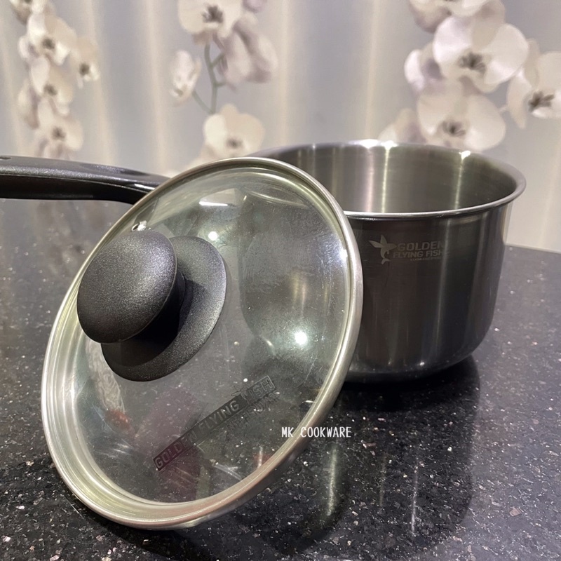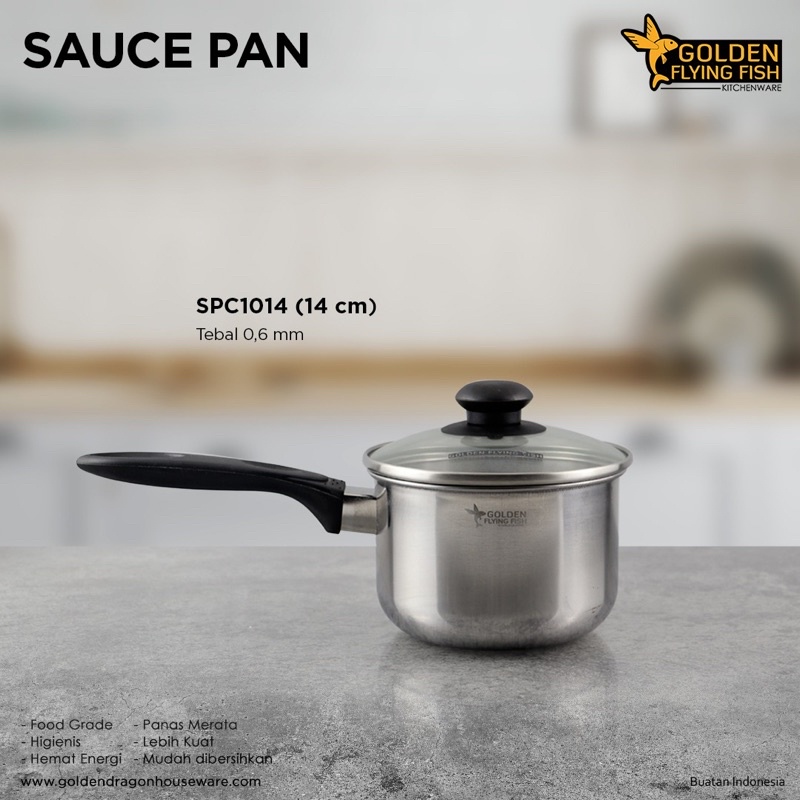Golden Flying Fish - Panci Sauce Pan Stainless Steel 14cm - Tutup Kaca Tempered Glass - Gagang Handle Tutup Tahan Panas - SPC1014 - SNI, Food Grade & Original 100% - Tebal dan Anti Karat - Kompor Induksi