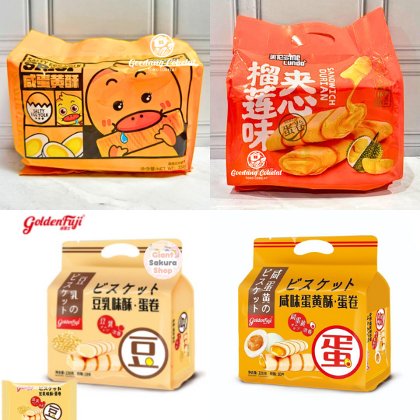 Golden Fuji Egg Roll Meilundo Sandwich Crispy Salty Egg Yolk Cookies Kukis Rasa Telur Asin Soy Bean Durian 228g / 258g