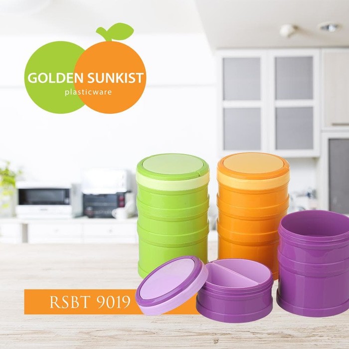 Golden Sunkist 9019 Rantang Piknik Susun 3 Bulat Plastik Lunch Box Kotak Makan Food Grade