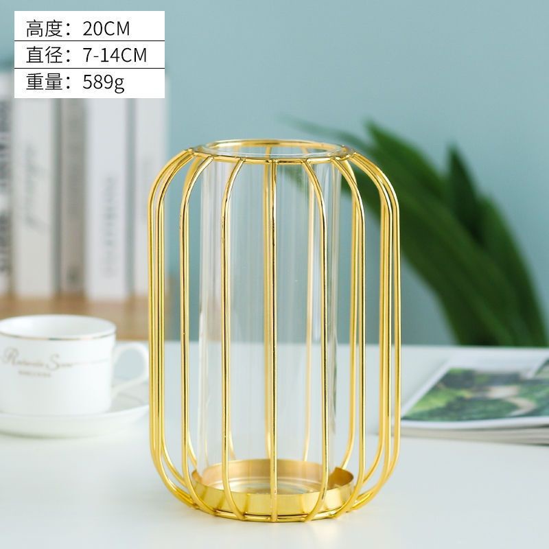 Golden Vase Transparan / Vas Bunga Tabung Bening / vase Bunga Dekorasi Rumah Luxury Vase Gold Glass
