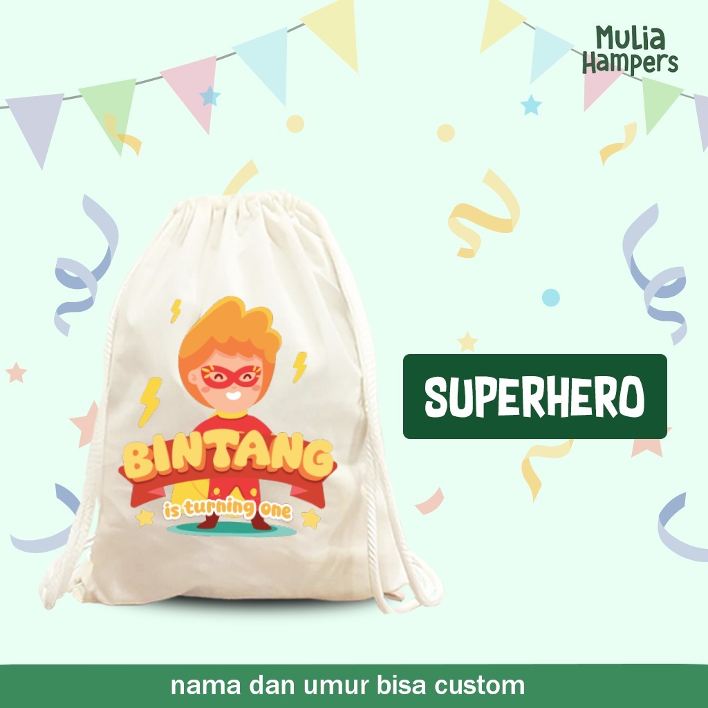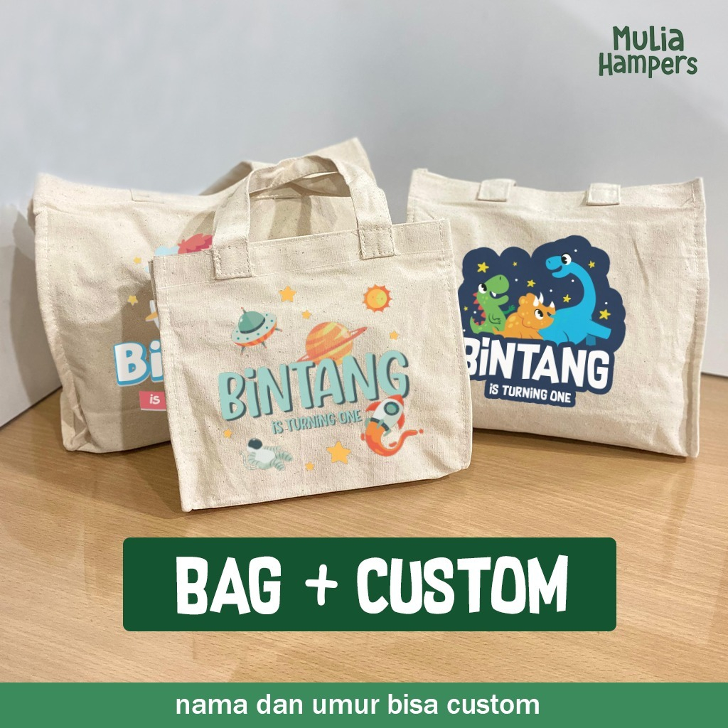 Goodie Bag Ulang Tahun Anak Sablon Custom Tas Blacu Kanvas Tote Bag Souvenir Birthday Hampers