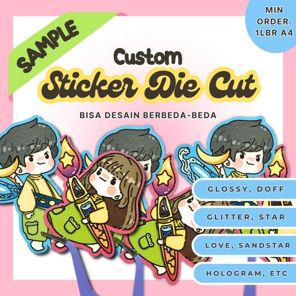 Goofymuufy Cetak A4 Custom SAMPLE Sticker Die Cut Sticker Dengan Varian Laminasi Matte Glossy Glitter Hologram dan Lainnya