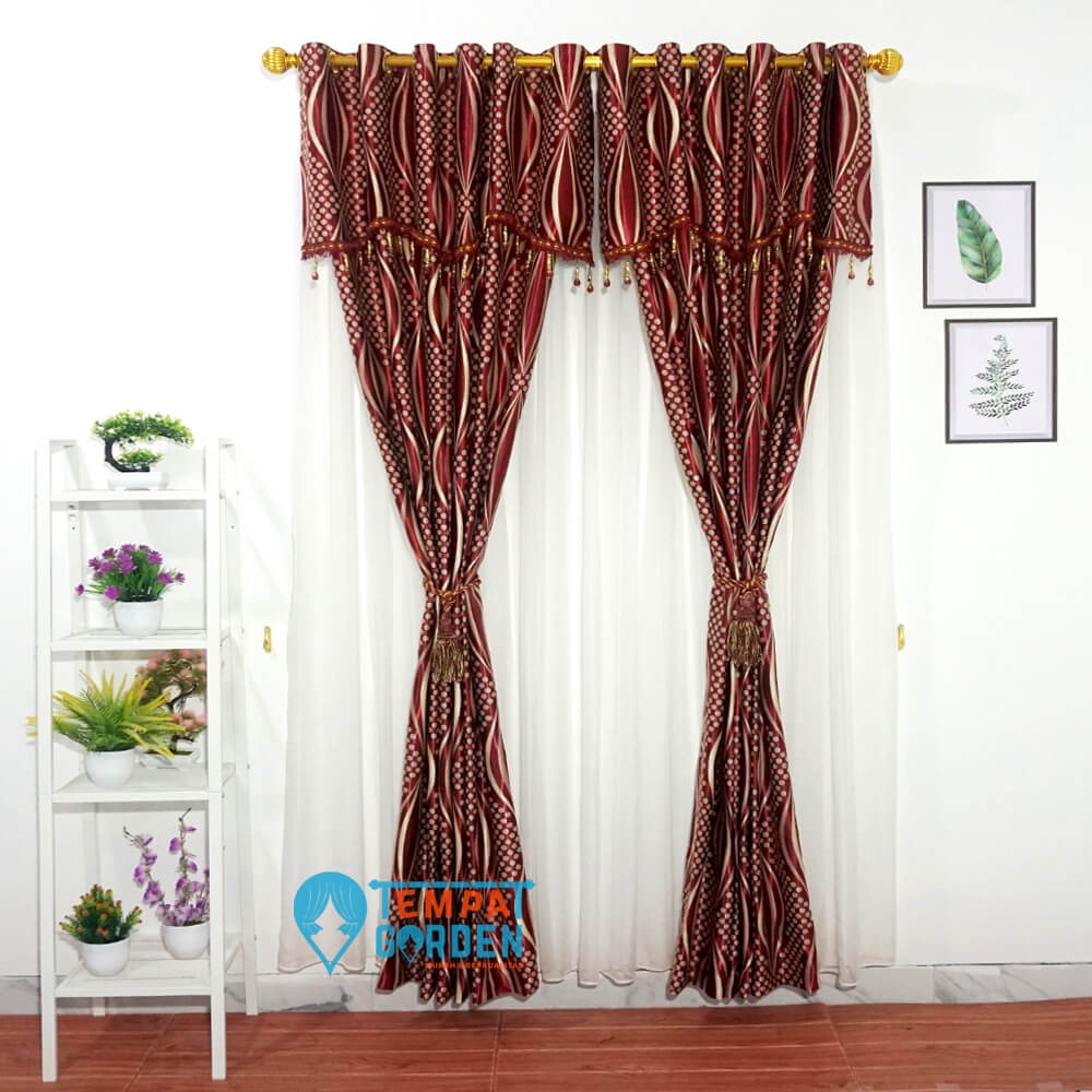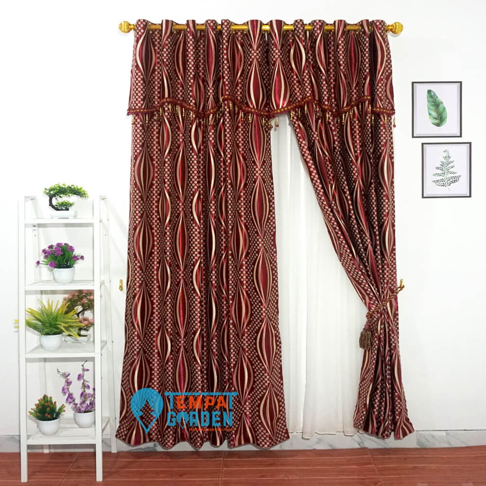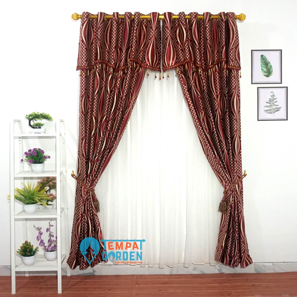 Gorden Blackout, Gorden Jendela, Gorden Pintu Motif Jakat Bulat Merah