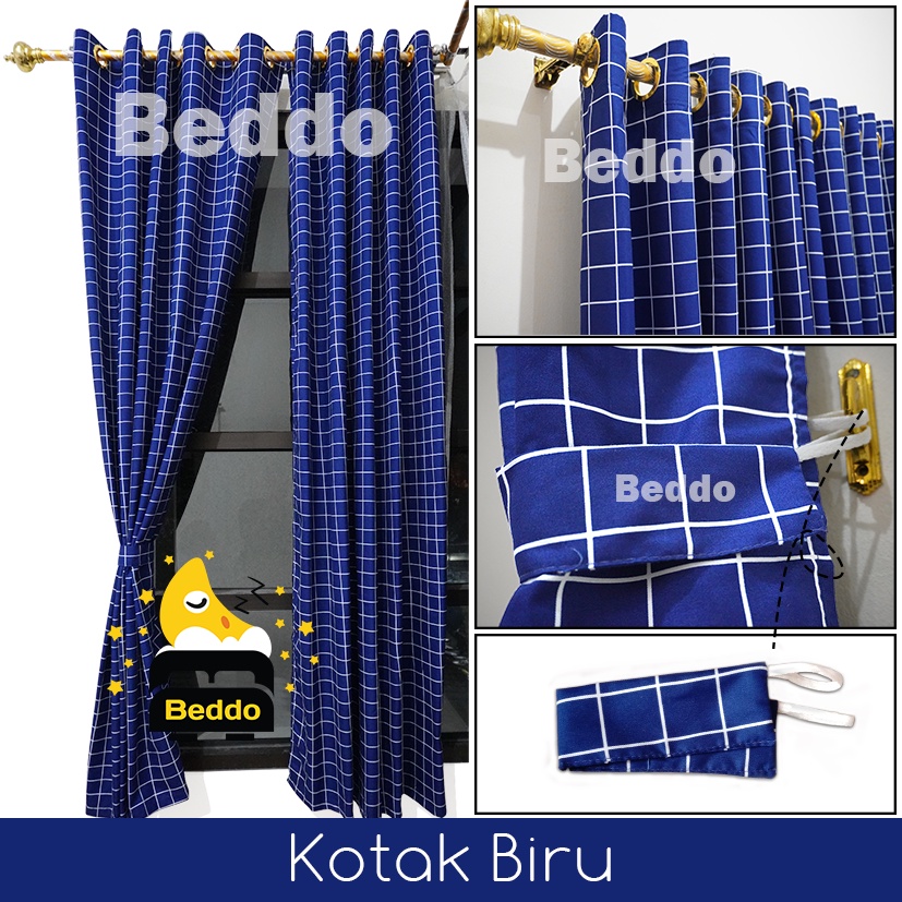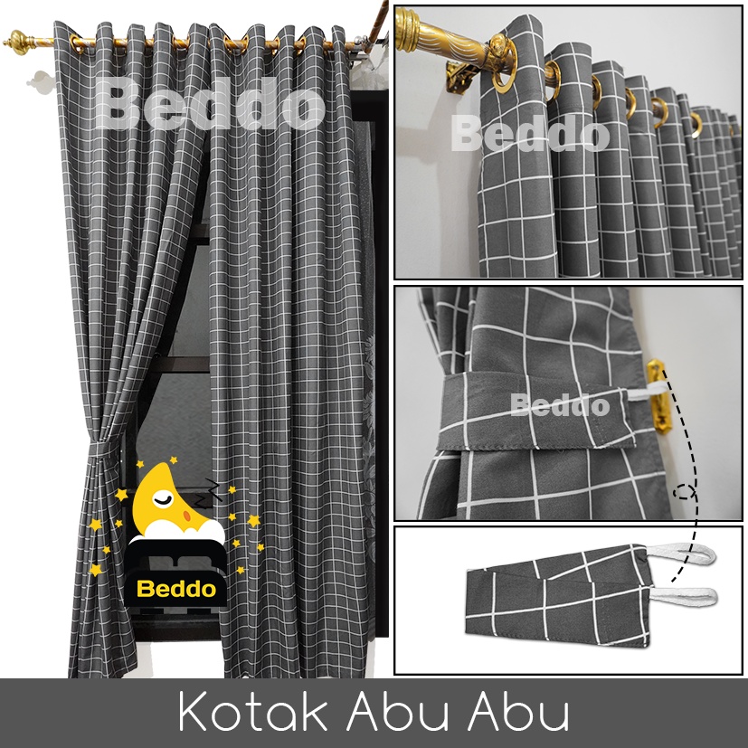Gorden Jendela Pintu Minimalis Smokring Motif kotak Aesthetic l FREE TALI