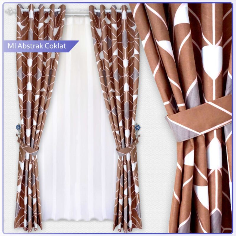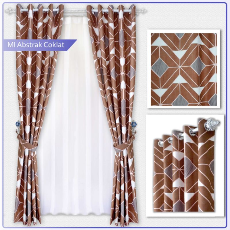 Gorden katun motif minimalis coklat gordyn aesthetic hordeng minimalis katun smokring motif minimalis geometris abu