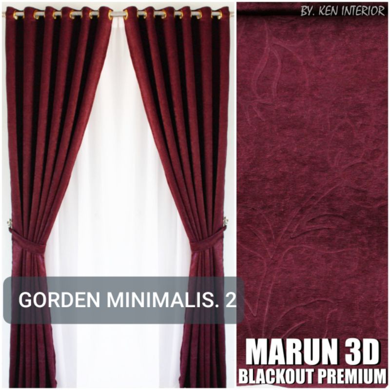 Gorden blackout merah marun gorden pintu dan jendela gorden smokring 12 lobang
