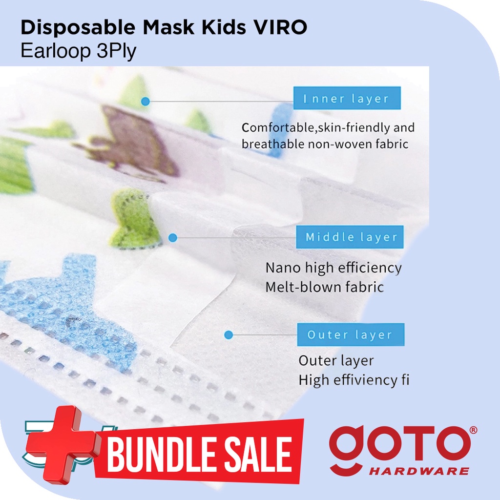 Goto Viro Disposable Masker Kids 3 Ply Facemask Anak 3Ply Earloop
