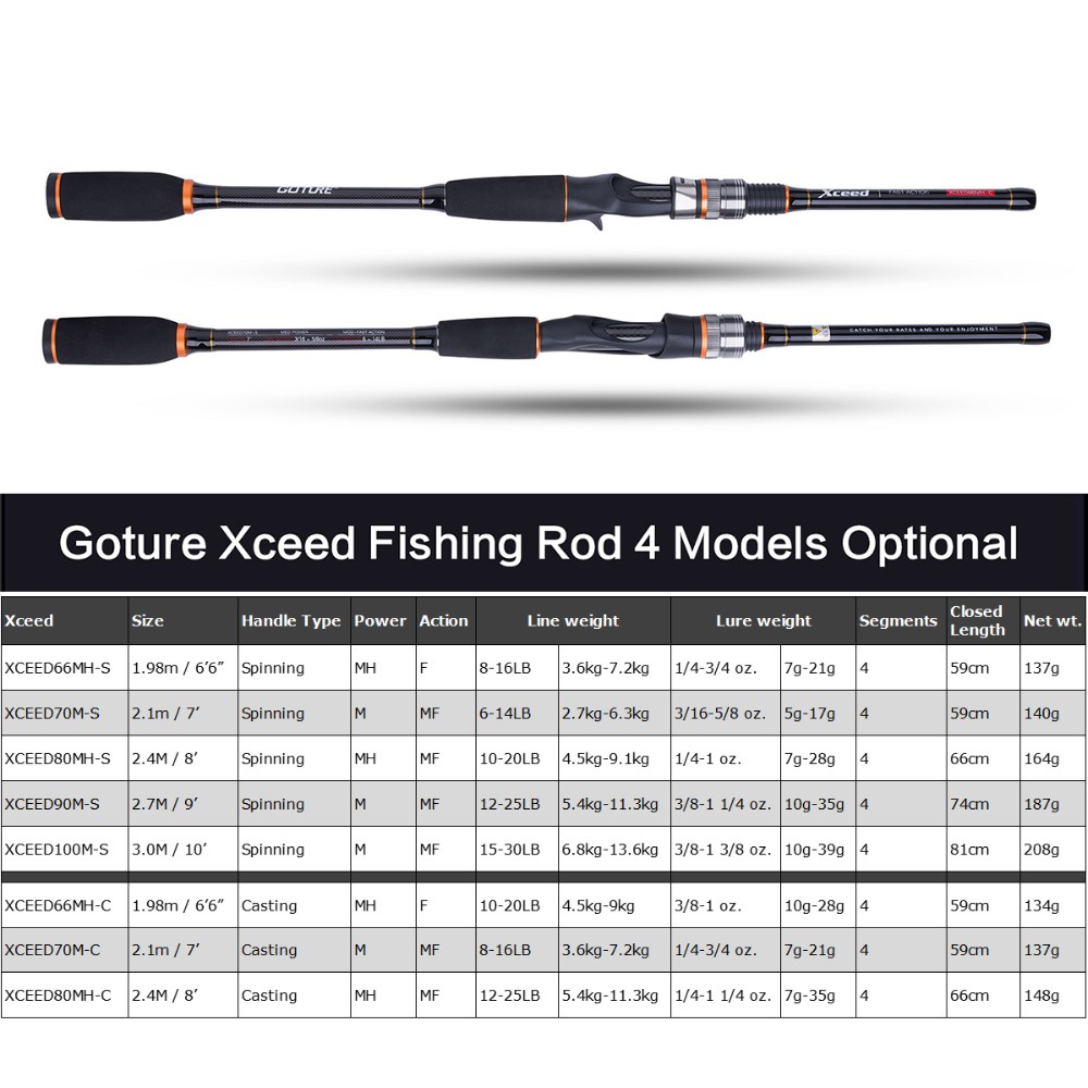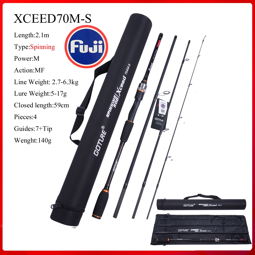 Goture Xceed II Fuji Guide Ring Portable Lure Fishing Rod Batang Pengecoran Berputar Batang Perjalanan Karbon Tinggi Ultra Ringan Dengan Kasing