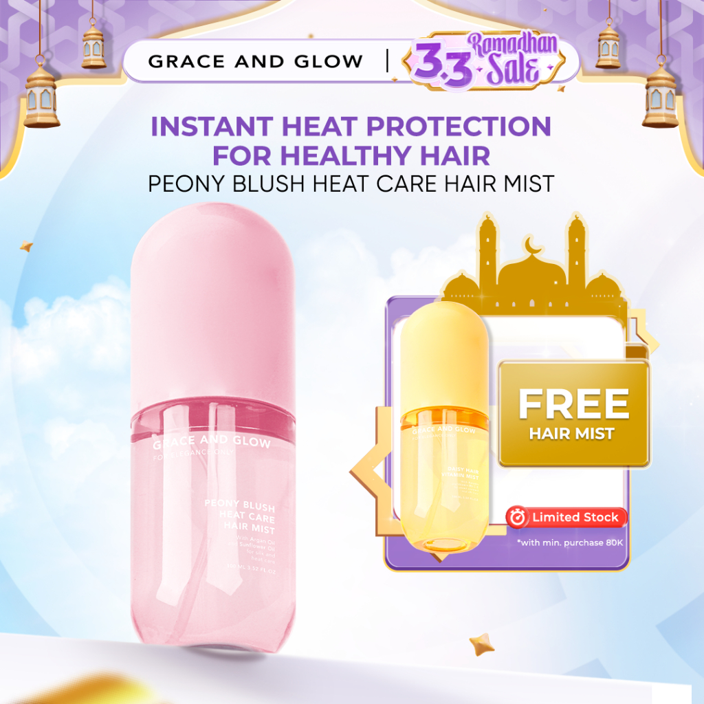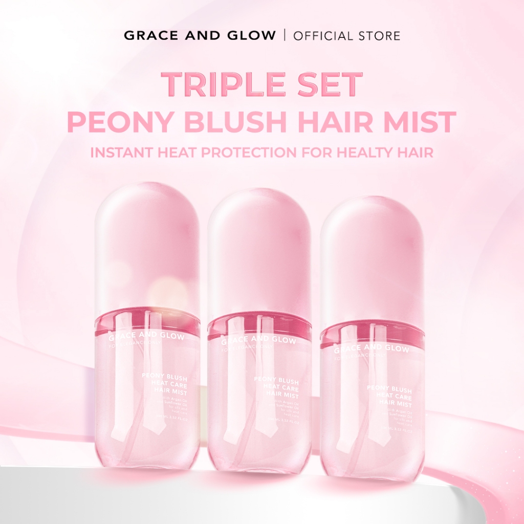 Grace and Glow Peony Blush Perfume Hair Mist | Heat Care UV Protection | - Parfum Rambut Spray untuk Melindungi Rambut dari Panas Catokan dan Sinar UV with Argan Oil + Sunflower Oil