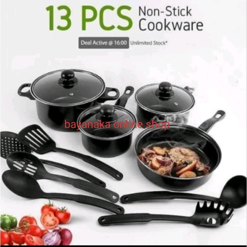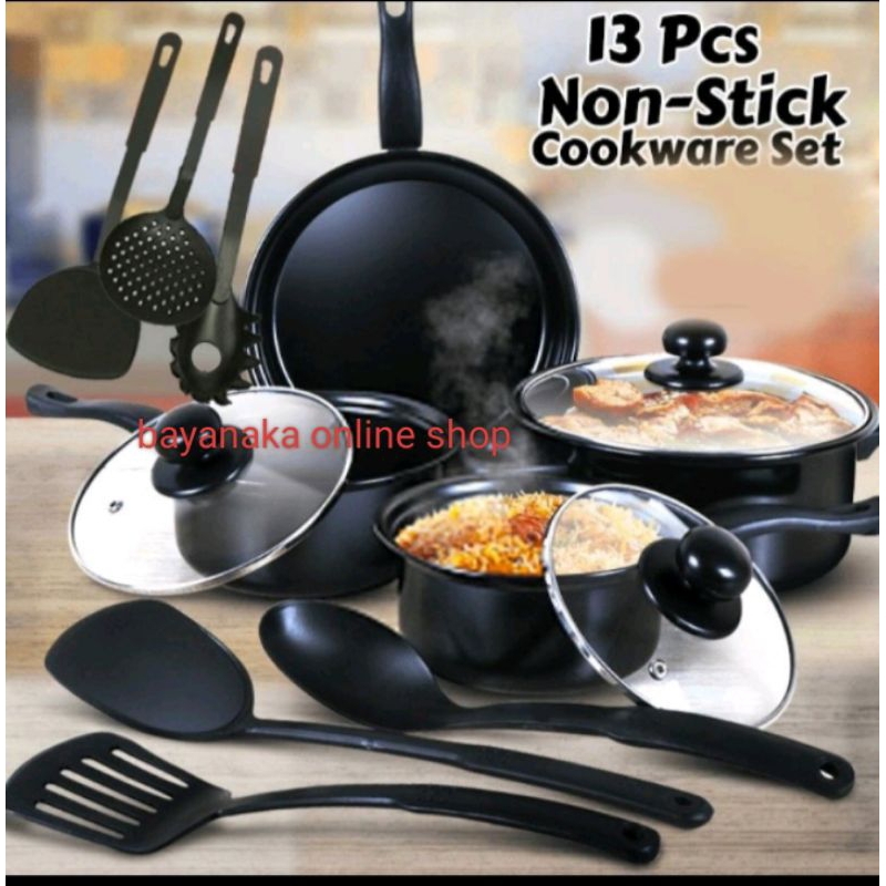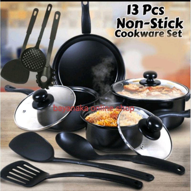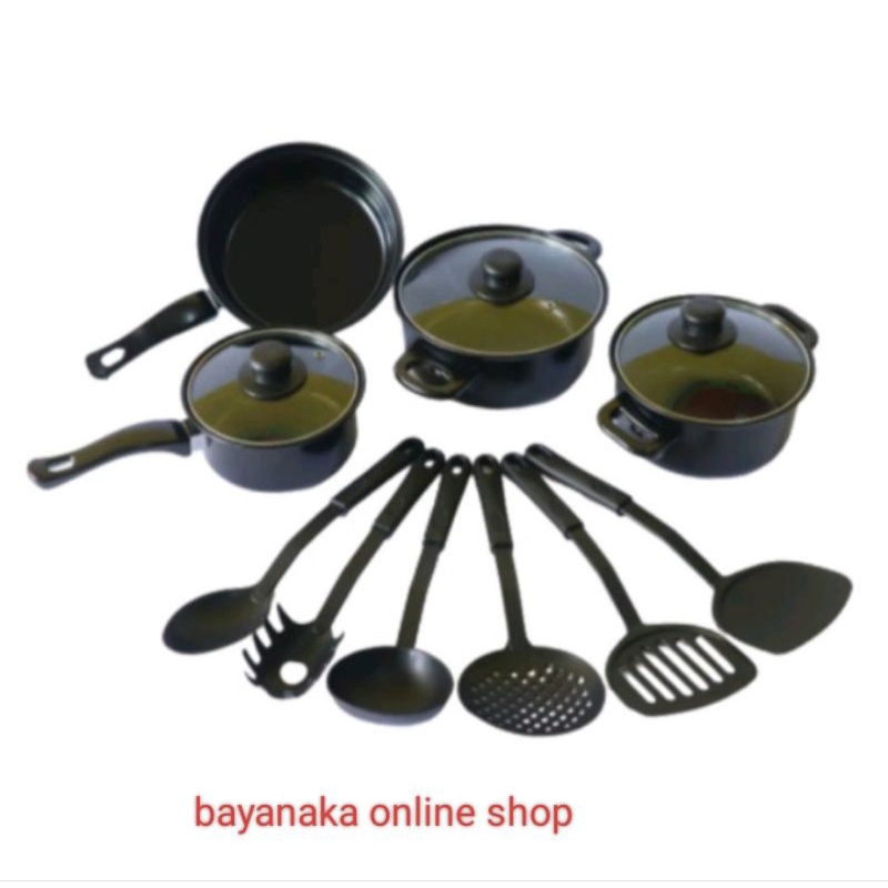 (Bisa COD)paket Cookware Panci 13 Set In 1 Paket Peralatan Masak Panci Enamel Set Spatula
