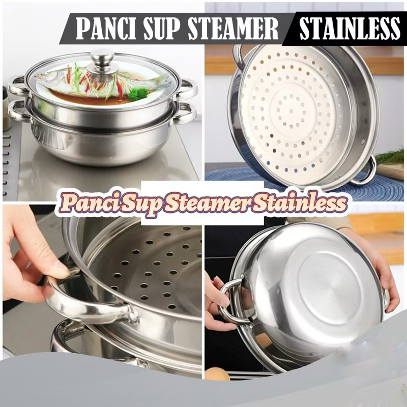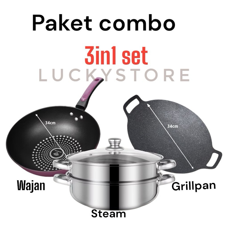 LS PAKET HEMAT Wajan Diamond 34Cm + Panci Steamer 28 CM Stainless + Wajan BBQ Datar 34 CM