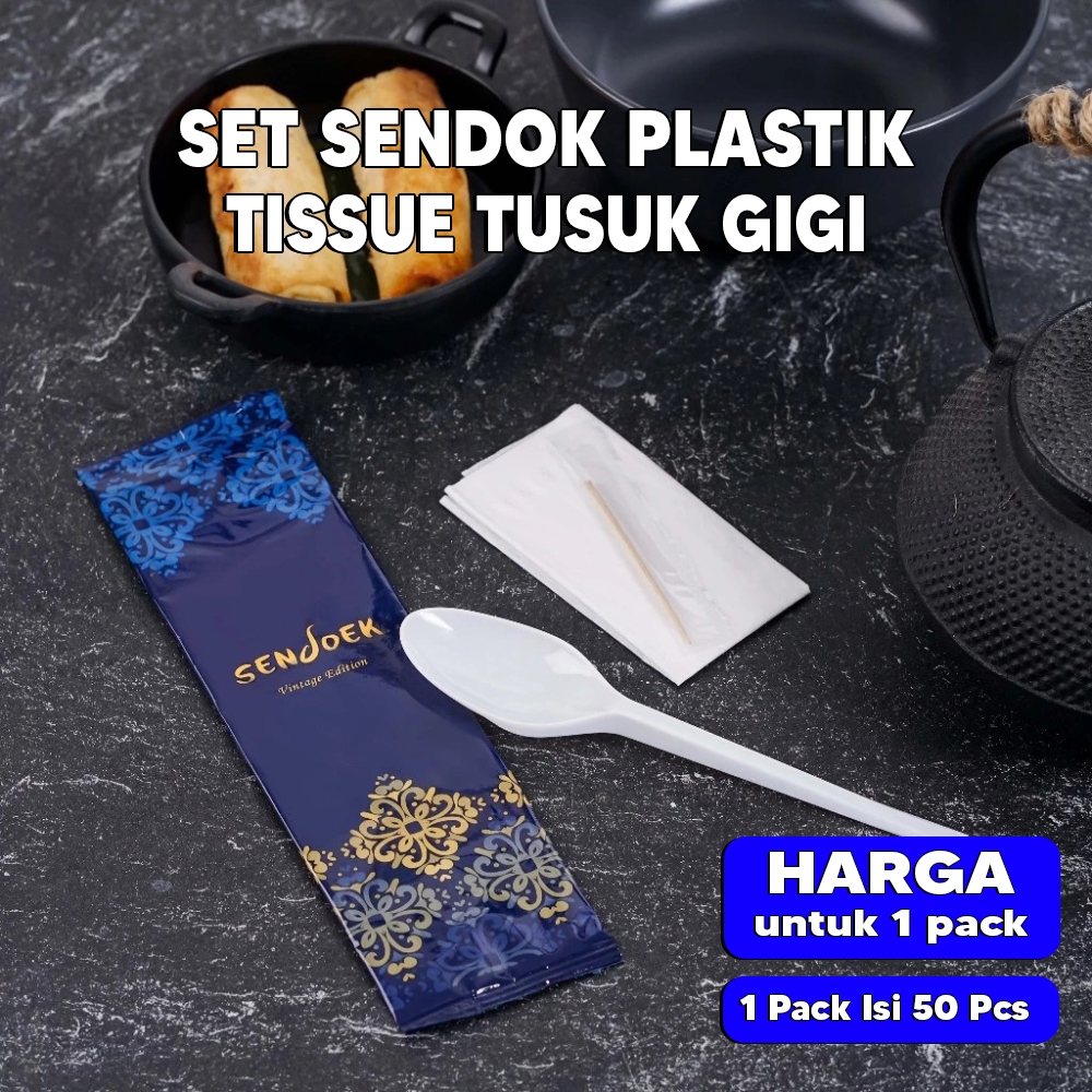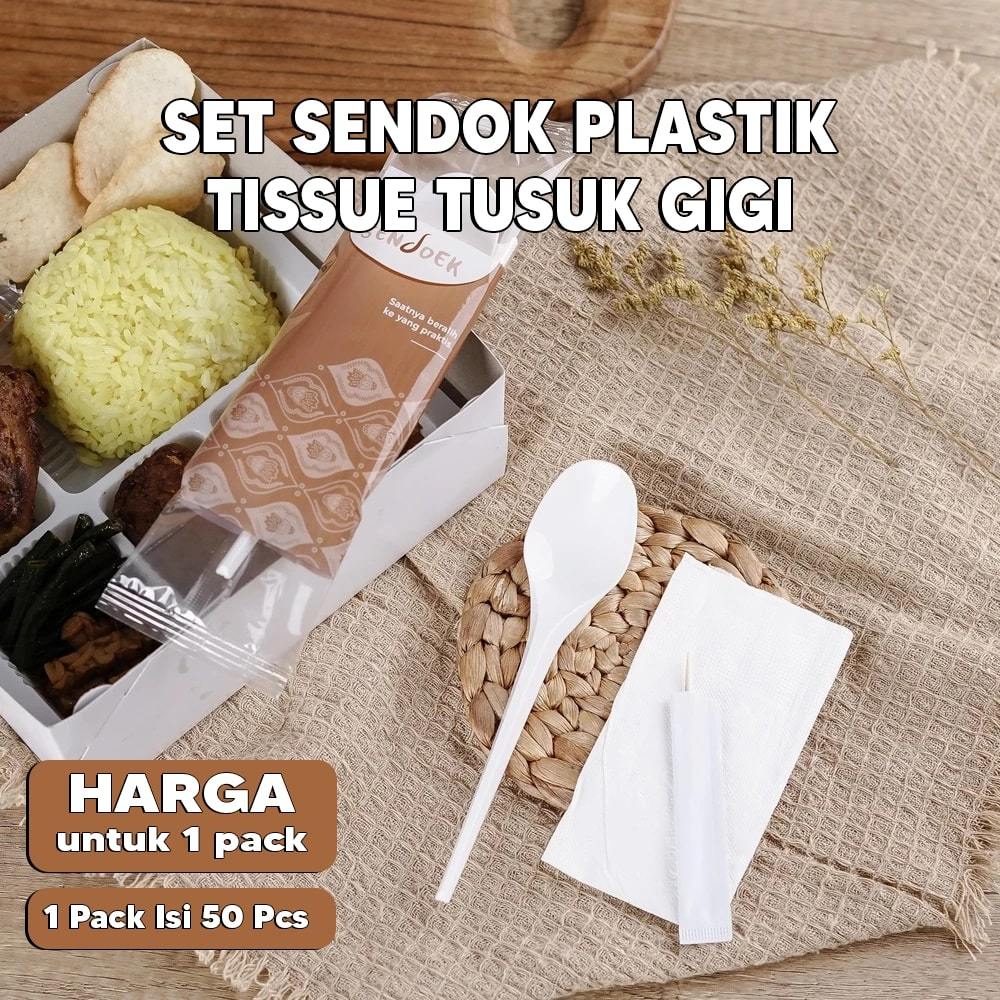 sendok plastik set ( Sendok, tissue, tusuk gigi ) PUTIH