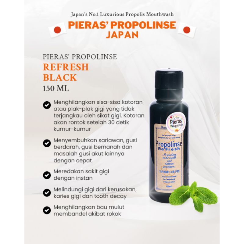 Pieras Propolinse Refresh Black Mouthwash 150mL for Smokers Obat Kumur Perokok