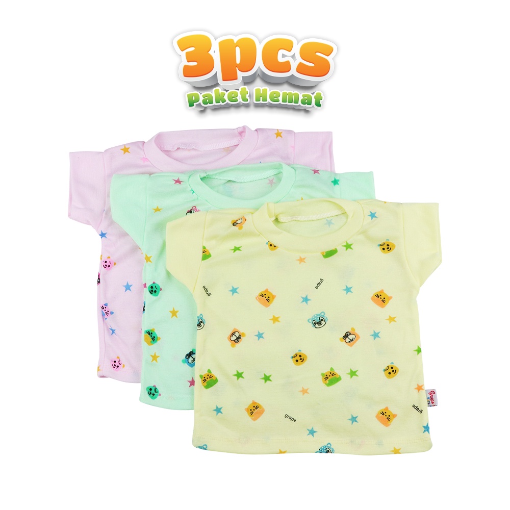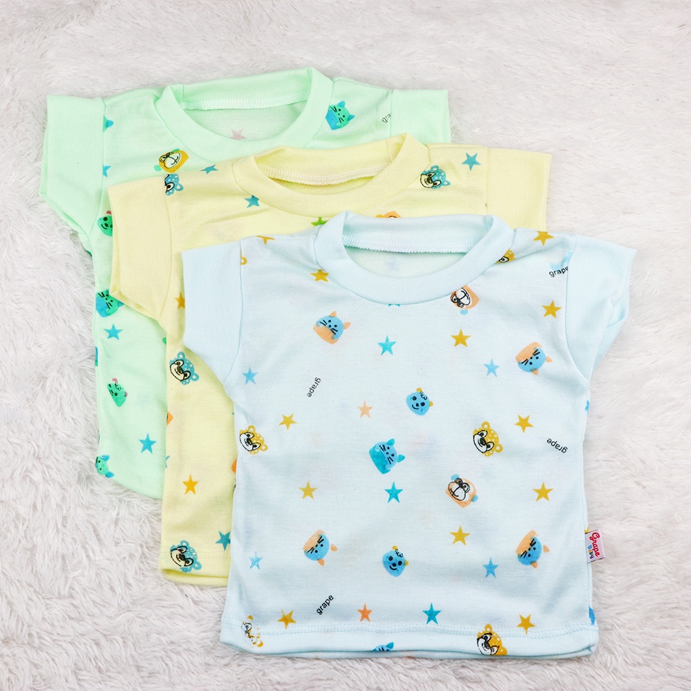 Grape Baby - 3Pcs Baju Bayi Lengan Pendek Unisex Pakaian Baby Bb Sa 03B