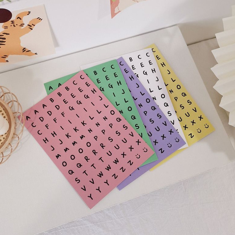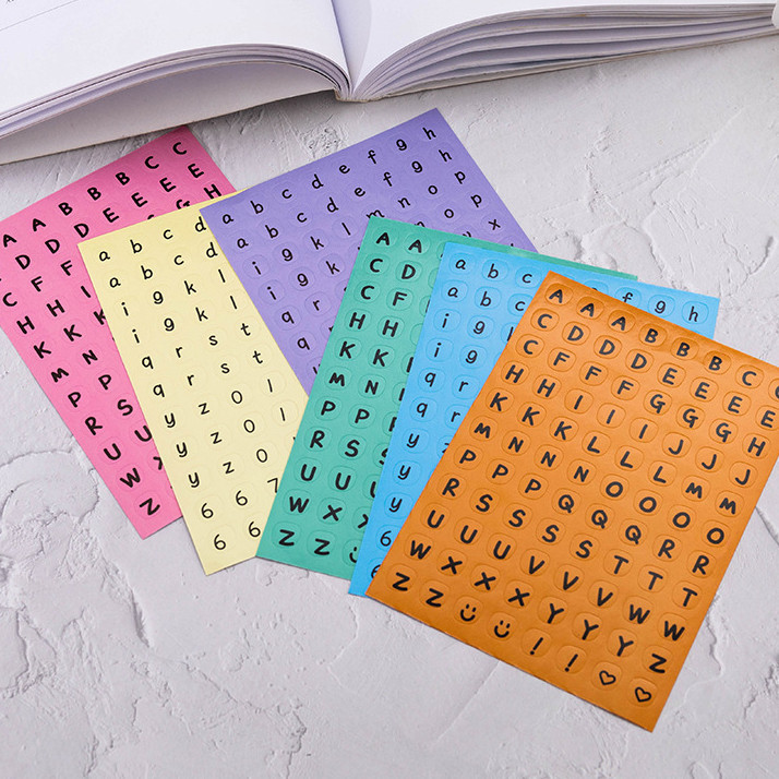 Gratis Ongkir - 6217 Stiker Alphabet Warna Plain / Dekorasi Sticker Huruf / Kertas Tempelan Label Huruf dan Angka