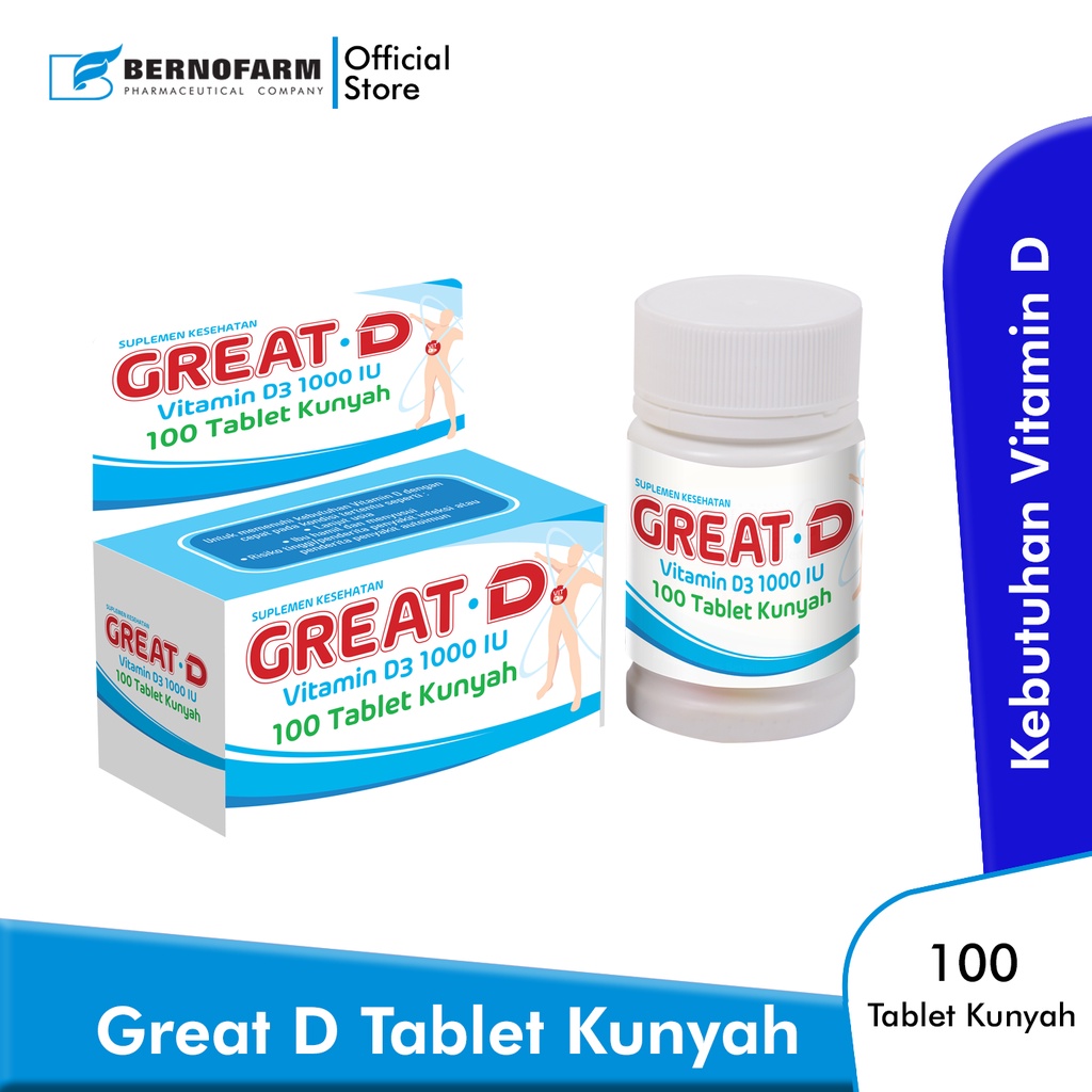 Great D Tablet Kunyah Vitamin D3 1000 IU - Isi 100 Tablet