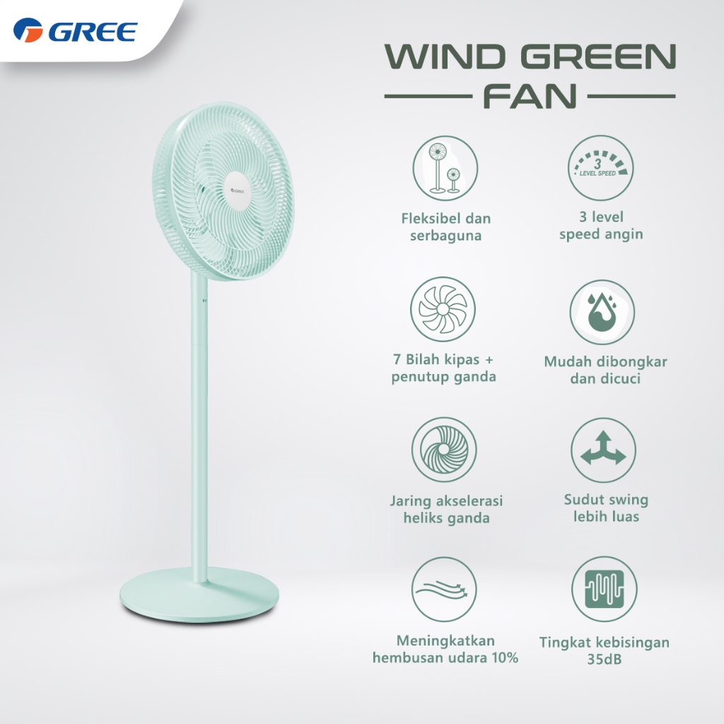 GREE Kipas Angin Green Wind Fan Size 14 Inch 3 Level Speed - Model GCF-14IGN