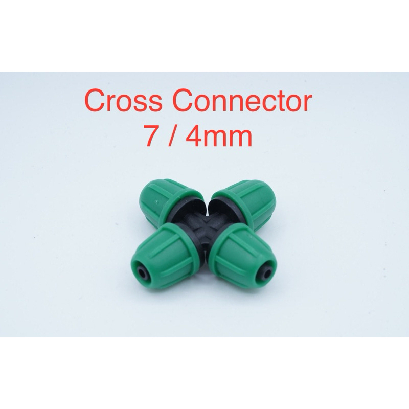 Green Konektor Fitting Cross Tee 4 Way Selang PE 7mm / 4mm Cross Connector Irigasi Hidroponik Agriculture Garden Irrigation 1/4 Inch Lock Nut Coupling 4/7mm PE Hose Connector Watering Joint | 2.034.0752 | YL-14549