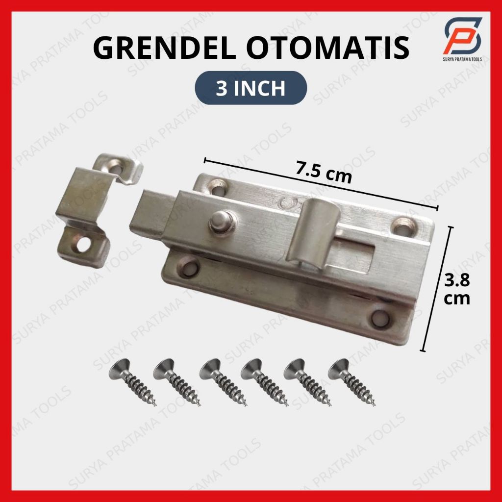 Grendel Otomatis 3 Inch Gerendel Tekan Slot Selot Pintu Jendela 3" Inci Pencet Otomatis Model Per Latch Stainless Oxford
