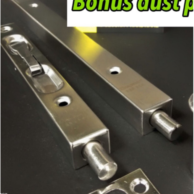 Grendel tanam pintu dua dobel double +penutup lubang grendel flush bolt pintu kupu kupu bonus dust proof stanlis Grendel tanam ukuran 6 inc + 12 inc bonus penutup grendel dust proof kunci pintu double selot kunci pintu Fb 508 Flush Bolt Spartan Aluminium