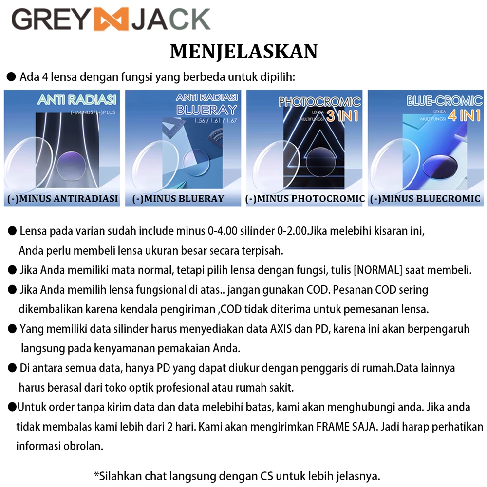 Grey Jack Frame Kacamata Titanium Bussines Style Kotak Elegant Pria/Wanita Bisa Minus Anti Radiasi Blueray Photoromic Bluecromic 98300