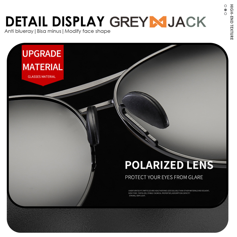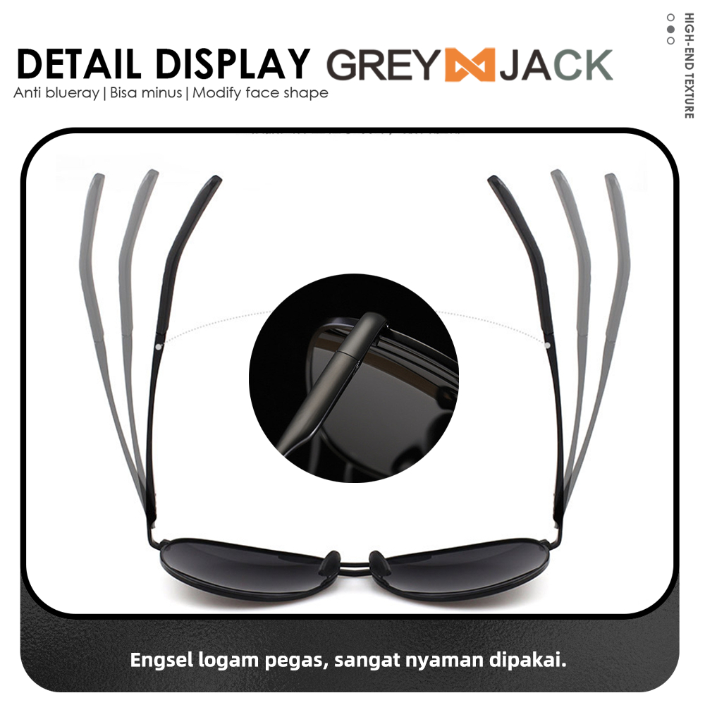 Grey Jack Kacamata Hitam Aviator Sunglasses Polarized Anti UV Anti Silau Pria keren fashion Metal gaya klasik 3927 8013