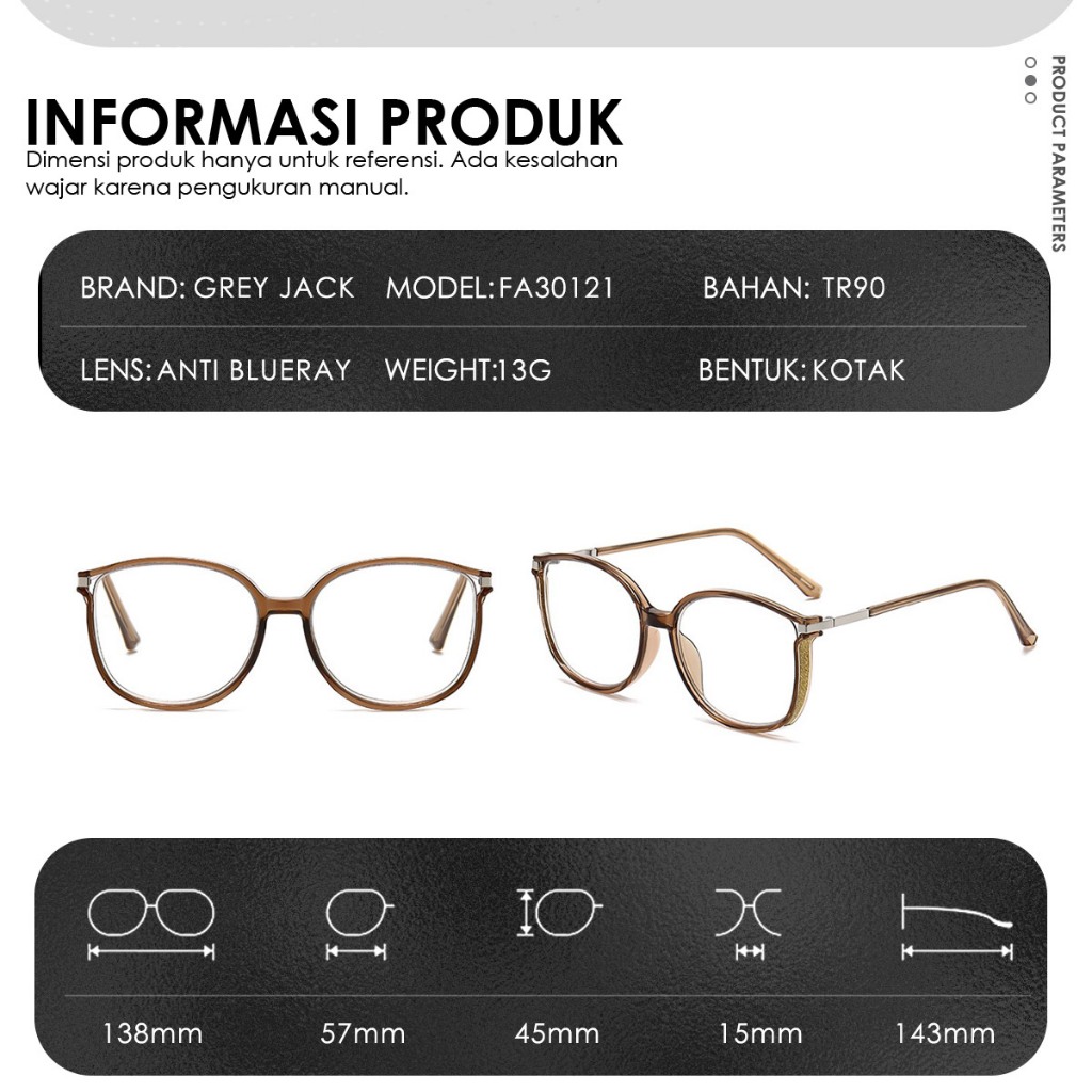 Grey Jack Kacamata Komputer Antiradiasi Blueray UV Tr90+Metal Bisa Minus Model Semi Kotak Unik Trend Terbaru 30121