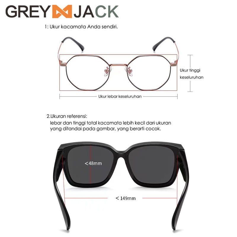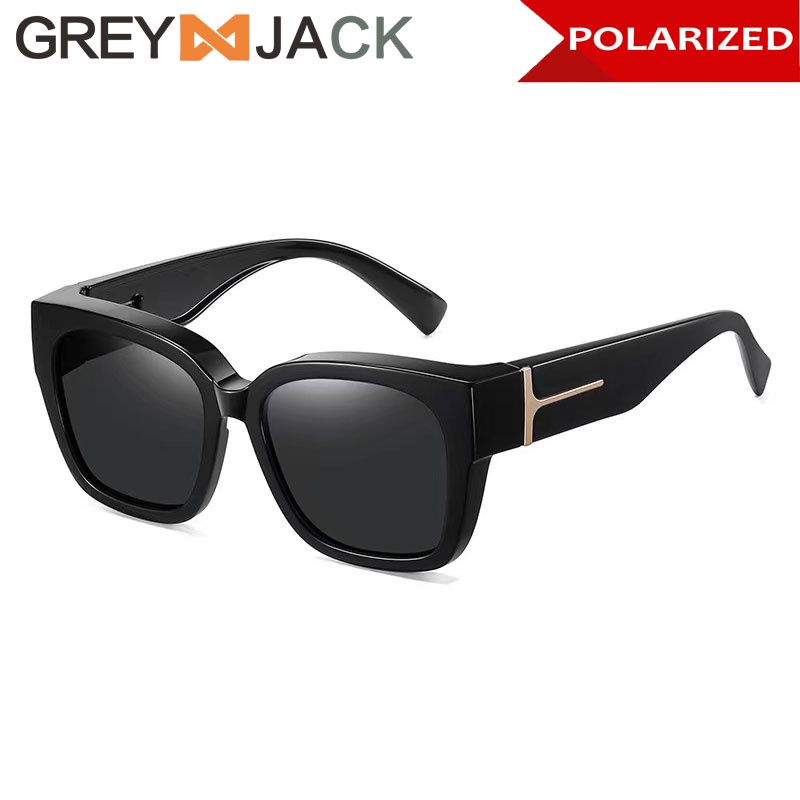 Grey Jack Kacamata Sunglasses pakai double dengan kacamata Polarized Style Oversized TR90 Bentuk Kotak Besar Fashion Wanita Perlindungan UV 7511 7519 7520