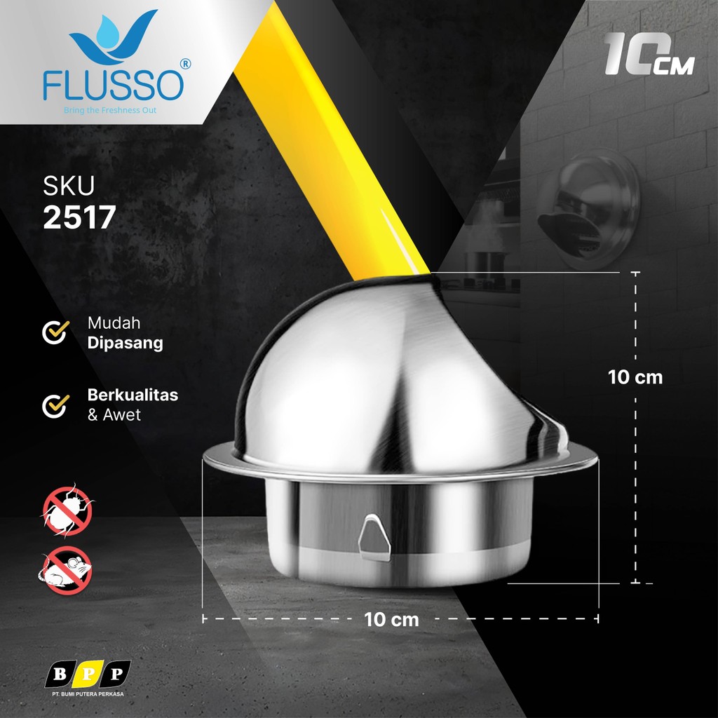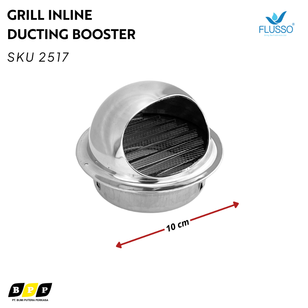 Grill Penutup Inline Duct Bosster Fan Stainless FLUSSO | Corong Asap Dinding Stainless 2517
